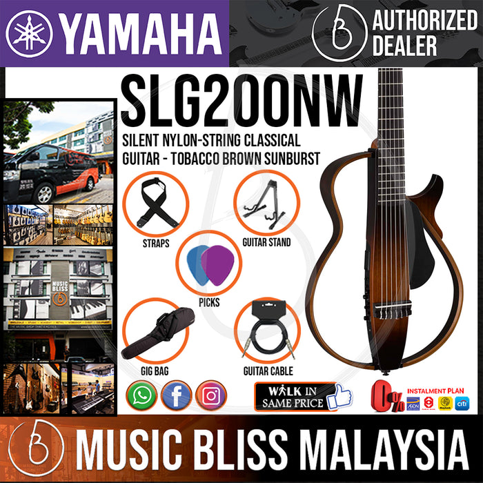 The SLG200NW is the latest in Yamaha's groundbreaking line of "silent" guitars; this version is designed just for classical guitarists. The 2-1/16" nut provides that classical guitar feel, and the guitar's top section detaches and stows in the included gig bag — making it fit easily in an overhead compartment. Convenient and yet authentic, this guitar exhibits Yamaha's SRT powered system, developed to reproduce the sounds of a high-end Yamaha acoustic guitar. You also get a built-in chromatic tuner, onboard effects, aux in, and headphone output. With its mahogany body and neck, rosewood frame, and ebony fingerboard, the Yamaha SLG200NW is as beautiful as it is functional and travel-ready.