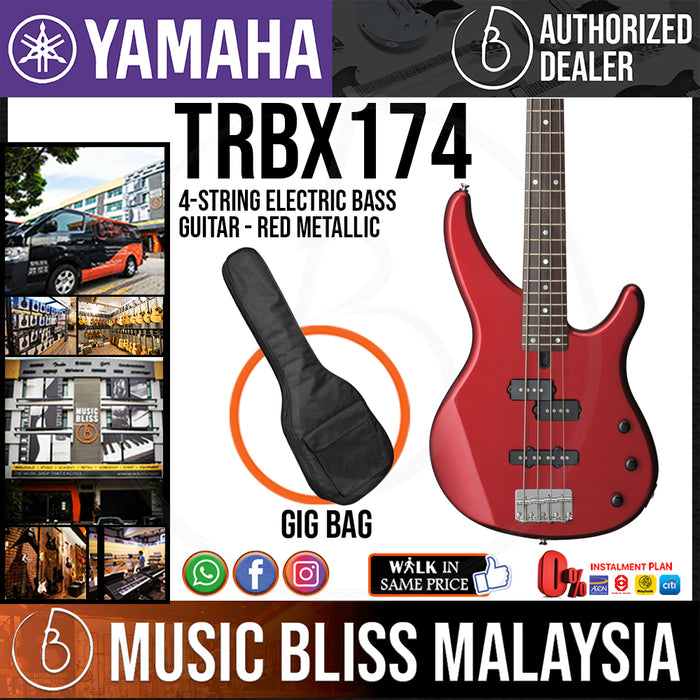 The Yamaha TRBX174 bass guitar is an outstanding value for the modern bassist. The TRBX series is one of Yamaha's most popular basses, and for good reason. This cool-looking, great-sounding bass gives you a comfortable Yamaha body shape and a fast-action bolt-on maple neck with a smooth-playing sonokeling fingerboard. You get strong, punchy tone from the P/J arrangement of split-coil/single-coil pickups. Factor in the solid hardware and a range of great finishes, and you've got an eye-catching and ear-catching bass with the Yamaha TRBX174.