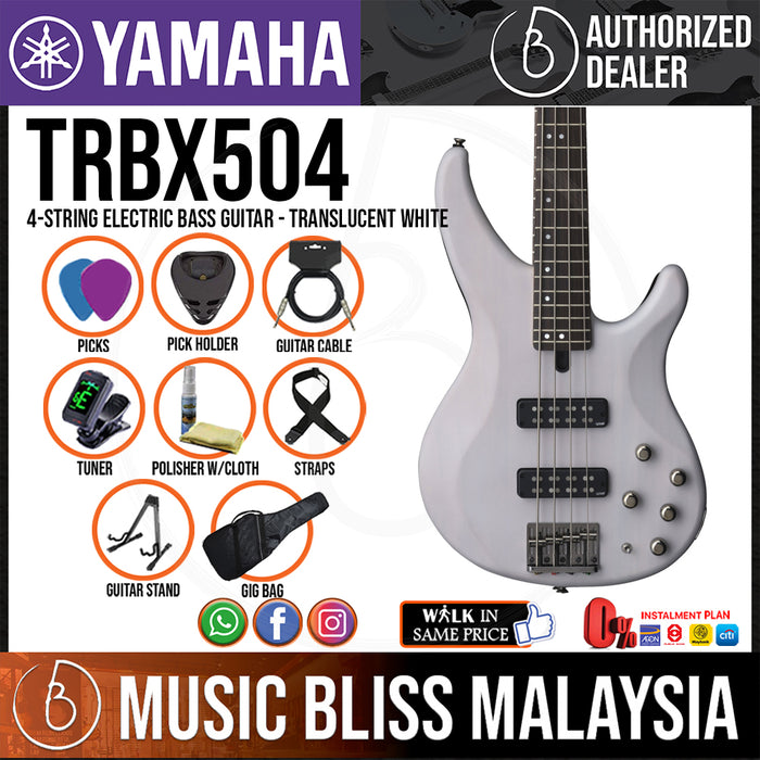 Yamaha TRBX504 4-string Electric Bass Guitar - Translucent White (TRBX 504/TRBX-504)