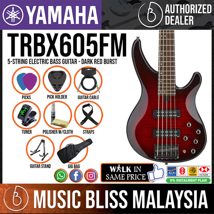 Yamaha TRBX605FM 5-string Electric Bass Guitar - Dark Red Burst (TRBX 605FM/TRBX-605FM)