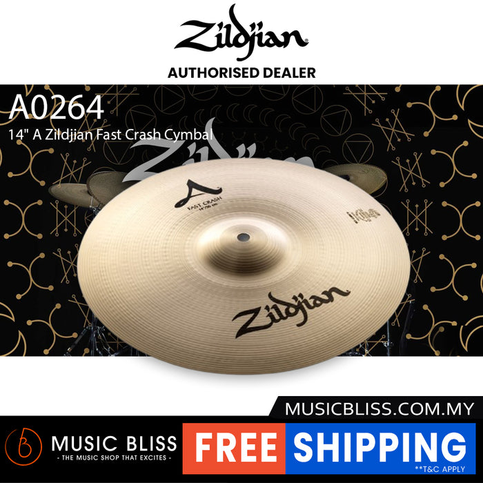 The Zildjian A Zildjian Series 14" Fast Crash cymbal reacts quickly, delivering a strong musical attack with a very fast decay that's ideal for punching through the mix at choice moments. Cast from Zildjian's secret alloy formula and finished using centuries-old processes, the paper-thin A Zildjian Fast Crash fits in a wide variety of musical genres. Played by a who's who of drummers around the world, A Zildjian cymbals are the "gold standard" against which all others are compared. The A Zildjian Series 14" Fast Crash cymbal continues that tradition.
