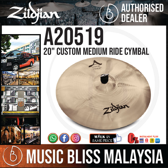 The Zildjian A Custom 20" ride cymbal is the perfect choice when you need a ride that with good stick definition and a good deal of colorful, warmer tones. The A Custom 20" Ride cymbal is a medium ride cymbal finished in a tradtional finish. Zildjian is a premium cymbal brand with a history running back over 380 years. Add the legacy of Zildjian to your kit with the A Custom 20" ride cymbal.