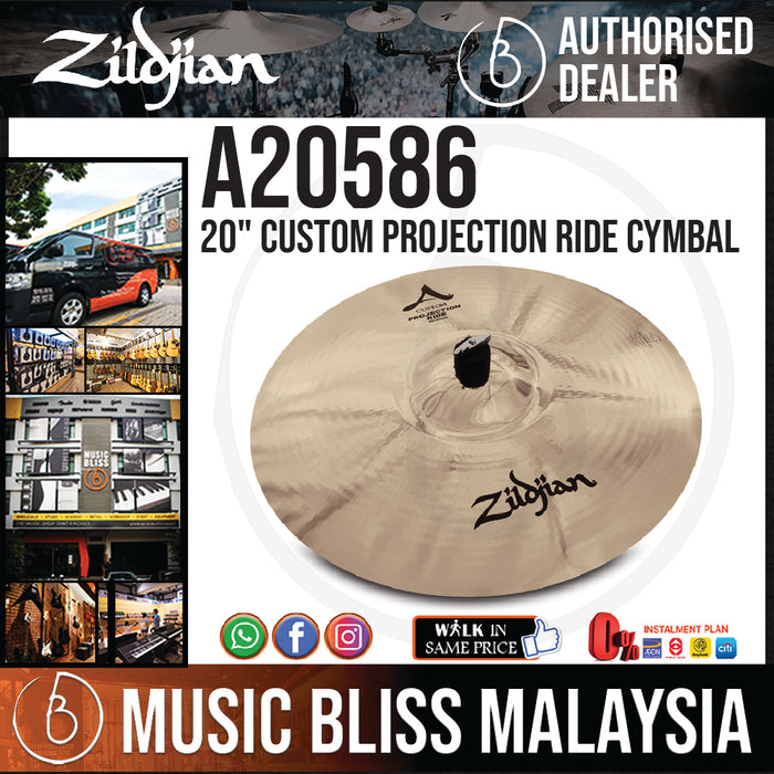 Want a ride that can cut through extremely high stage volume? You're going to love this Zildjian 20" A Custom Projection Ride. This heavyweight ride is both extremely loud and extremely clear. Work the bell, and you'll be rewarded with a penetrating chime. The bow and rim regions bring out a character that's just on the warmer side of bright. Clear as it is, the 20" A Custom Projection Ride isn't stingy about sustain, and you can create cool washes by crashing it or working the bow.