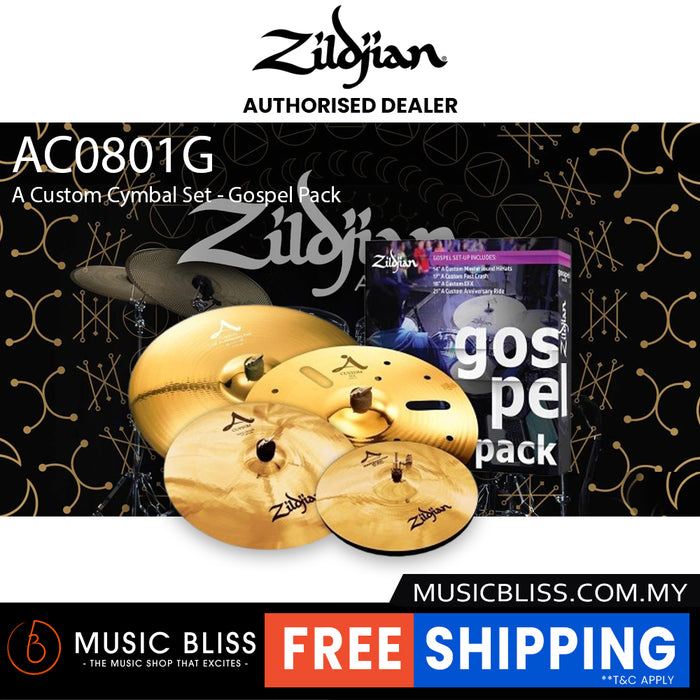 The rhythmic tones and strong vocals of Gospel music need a bright, cutting sound that is both shimmering and able to be heard. The Zildjian Gospel Pack Cymbal Set features a handpicked selection of Zildjian A Custom Cymbals that are just the right amount of brightness and sweetness that Gospel music demands. This set is ideal for drummers inspired by a higher power. All Zildjian cymbals are made in the U.S.A.