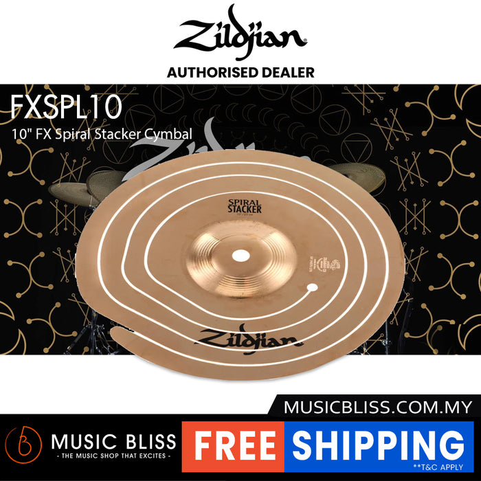 Zildjian's 10" fx Spiral Stacker is paper thin, ultra-lightweight, and has an eye-catching visual spiral effect when played. Zildjian fx Spiral Stackers are an inexpensive entry into cymbal stacking that delivers a diverse palette of trashy sound. You can stack Spiral Stackers on anything, from splashes, to Chinas, to crashes, Gen 16 cymbals, or even broken cymbals you've taken out of service. Music Bliss drummers know that fx Spiral Stackers offer a versatile, value-packed option for drummers who want to get into stacking cymbals.