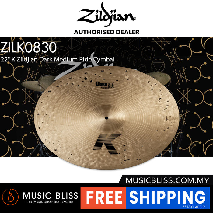 The Zildjian 22" K Series Dark Medium Ride cymbal gives you full-bodied performance with a quick decay and dark character. The 22" K Zildjian Dark Medium Ride, part of the K Series, features a traditional finish, making it a fine complement to your kit both visually and sonically. This ride cymbal is perfect for all kinds of music, from jazz to country to world styles. It offers clean, articulate performance while adding a great accent to your cymbal setup. Don't settle for just any ride cymbal; add more life to your kit with the great sound of the Zildjian 22" K Series Dark Medium Ride!