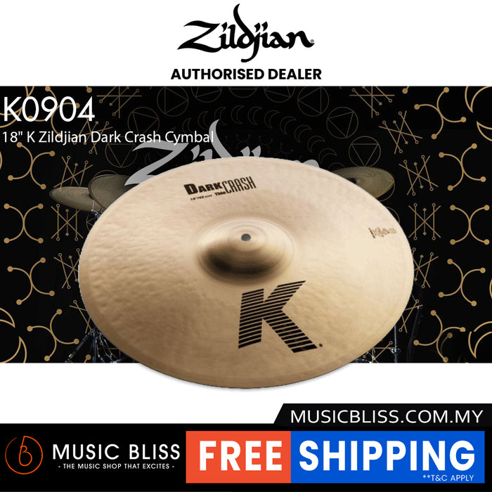 The Zildjian 18" K Custom Series Dark Crash cymbal gives you a unique sound for your kit, offering a full-bodied, dark tone and dry, trashy overtones that cut through the mix. The 18" K Custom Series Dark Crash provides a fast response with a quick decay, while the 18" size and popular weight help make this cymbal perfect for all kinds of contemporary styles where a deeper sound is desired. Don't settle for just any crash cymbal; get the most out of your kit with the great sound of the 18" K Custom Series Dark Crash cymbal!