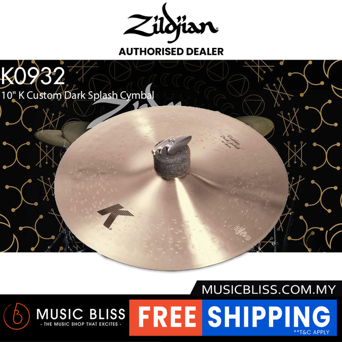 The Zildjian 10" K Custom Dark Splash cymbal gives you crisp performance for those quick hits, with a fast decay and maximum clarity. The 10" K Custom Dark Splash features Zildjian's first use of their "over-hammering" technique on a very thin splash. This cymbal is perfect for all kinds of music, giving you clean, articulate performance and adding character to your cymbal complement. Don't settle for just any splash cymbal; make your kit come alive with the great sound of the 10" K Custom Dark Splash!