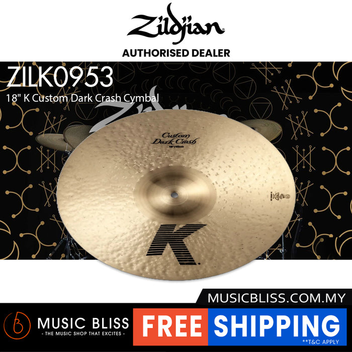 The Zildjian 18" K Custom Series Dark Crash cymbal gives you a unique sound for your kit, offering a full-bodied, dark tone and dry, trashy overtones that cut through the mix. The 18" K Custom Series Dark Crash provides a fast response with a quick decay, while the 18" size and popular weight help make this cymbal perfect for all kinds of contemporary styles where a deeper sound is desired. Don't settle for just any crash cymbal; get the most out of your kit with the great sound of the 18" K Custom Series Dark Crash cymbal!