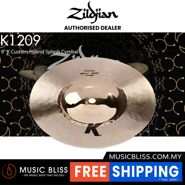 Looking to make a splash? The Zildjian 9" K Custom Hybrid Splash Cymbal was designed with the input of highly acclaimed drummer Akira Jimbo. The objective was to combine darkness and brilliance - and you'll be happy to know that the operation was a success. If you've seen and heard how Mr. Jimbo, Mike Portnoy or Stewart Copeland use their splashes, you've got the idea. The delightful thing about the 9" K Custom Hybrid Splash, is that it hits lower than than you'd expect, yielding impressive midrange punch - an auditory adrenaline blast that perfectly offsets your china cymbal and whatever other accent surprises your kit is packing. The Zildjian 9" K Custom Hybrid Splash is an inexpensive, yet invaluable addition to your kit.