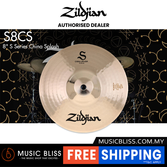 Add some punchy accents to your grooves with the 8" Zildjian S China splash cymbal. The fast, bright, and penetrating S-series China splash has a fast choke for metal and Latin music with a bright-and-brassy tone that won't get lost in a mix. Though it sells at an entry-level price, The Zildjian China splash is made from real Zildjian bronze for a sound that pros and intermediate players alike will have no trouble incorporating into their setup. Looking to add some new textures to your kit? Music Bliss drummers recommend checking out Zildjian S-series splashes.