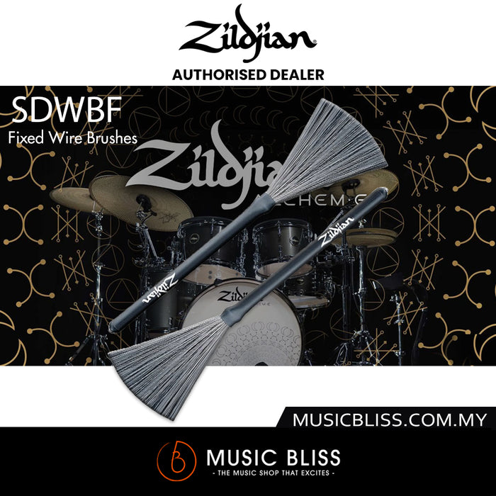 Zildjian's fixed wire brush sports a standard-sized wire spread, comfortable handle and a steel button on the butt-end for cymbal scrapes and effects. Solid feel and a longer handle. Non-telescoping.