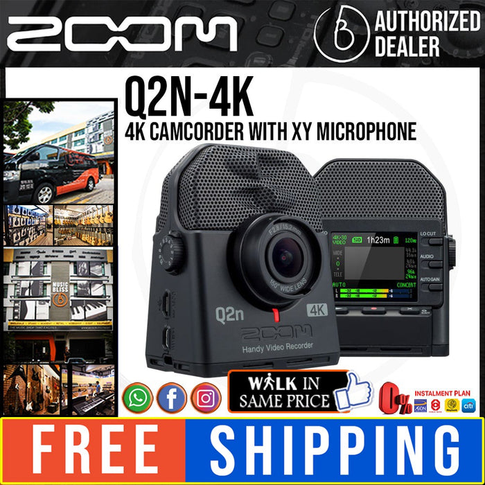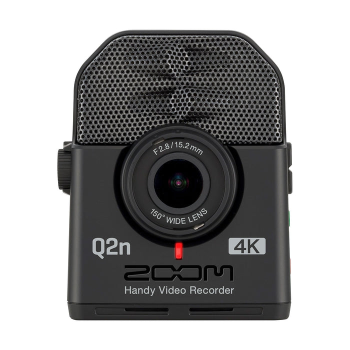 Put your audience where the action is with the Zoom Q2n-4K Handy Video Recorder from Music Bliss. Live performances, concert captures, documentaries, behind-the-scenes footage, even personal monitoring and evaluation — it's all presented in crisp 4K video and lifelike stereo surround. A wide-angle 150° lens and onboard 120dB XY stereo condenser mics ensure you never miss a moment in front of the camera. Just point and shoot. Twelve switchable scenes, five field-of-view settings, and an Auto mode adapt this recorder to any lighting and filming environment: dark stages to bright outdoor settings. Once you've got the shot, review film via the Zoom Q2n-4K's micro HDMI and 1/8 audio output and then share directly to Facebook, YouTube, and Twitch.